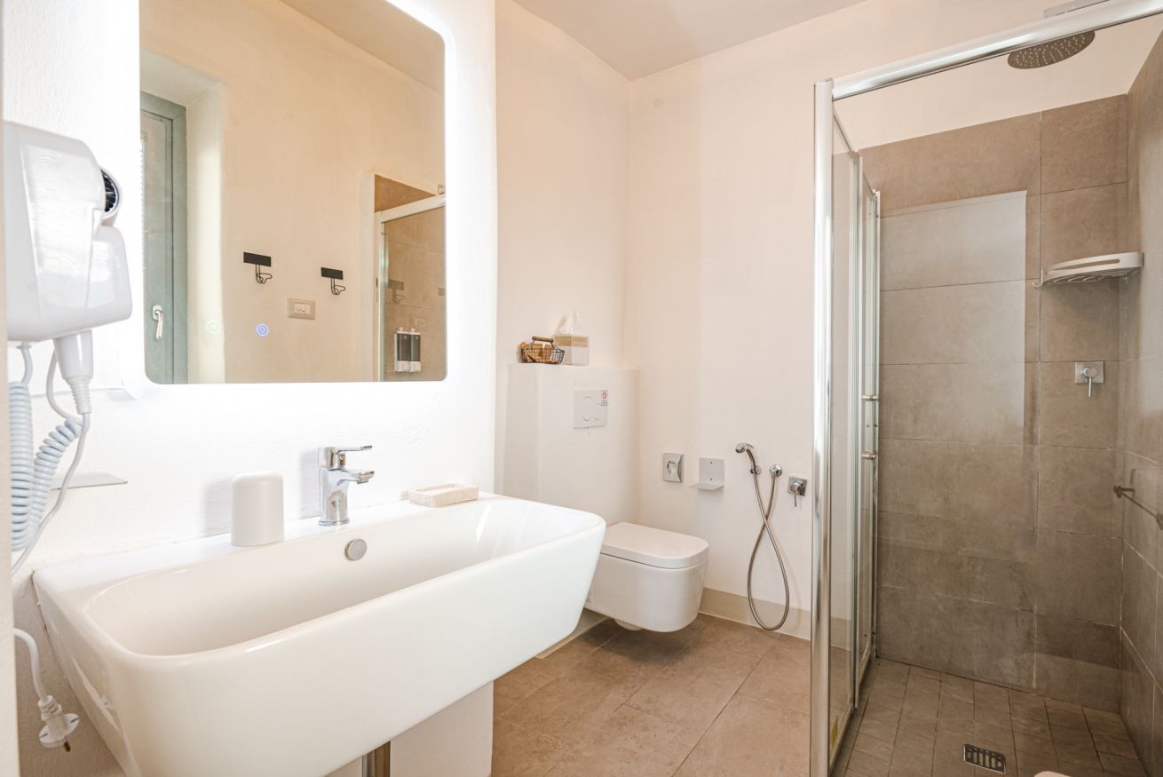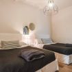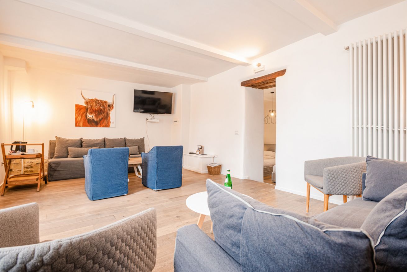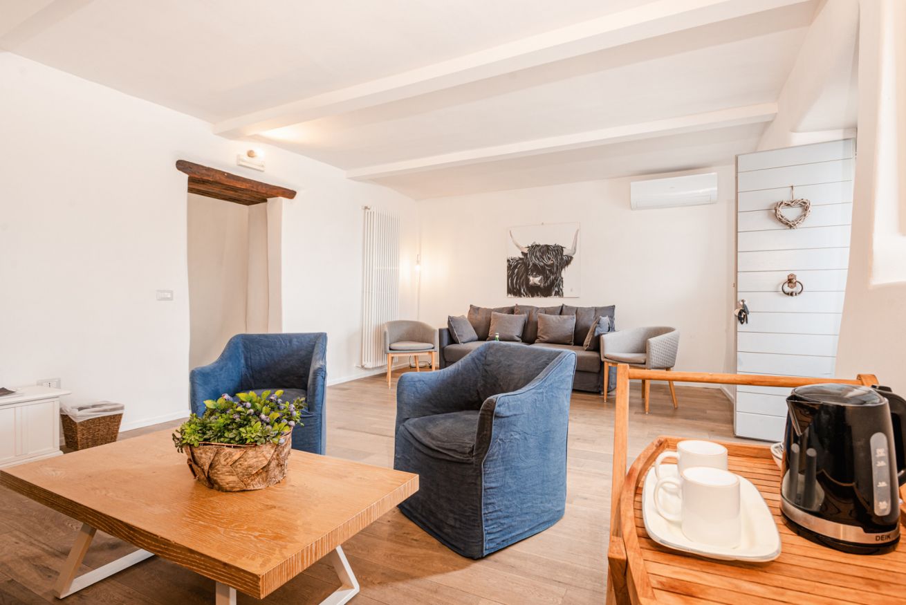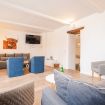 Apartamento de unos 55m² compuesto por una habitación con dos camas dobles, salita con un sofá cama doble, espacio exterior y baño con cabina de ducha, con un total de seis plazas.