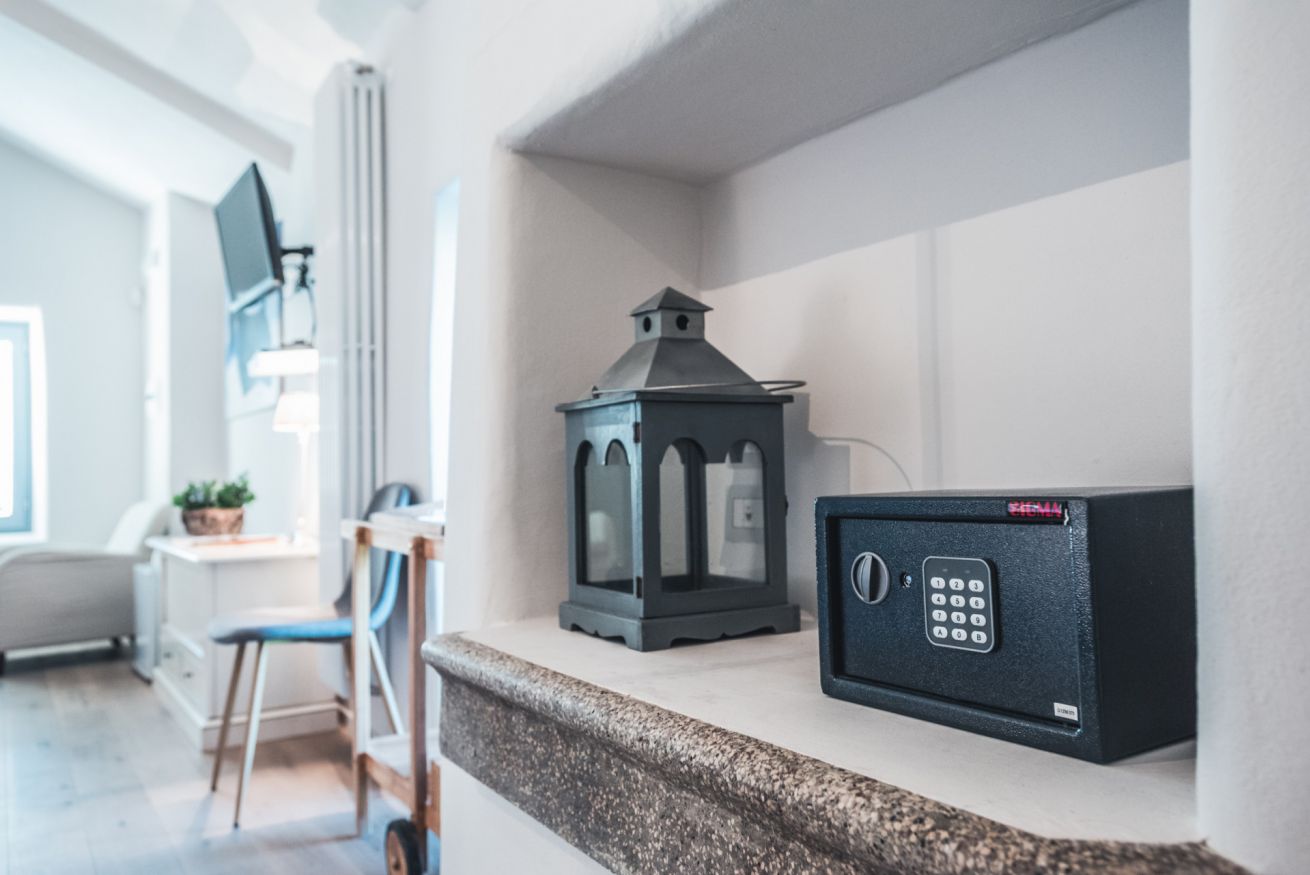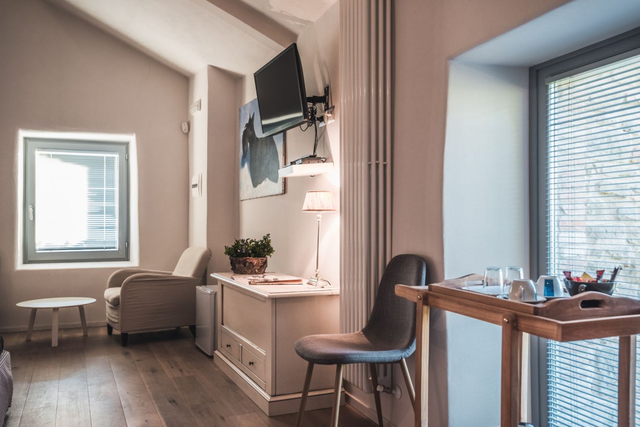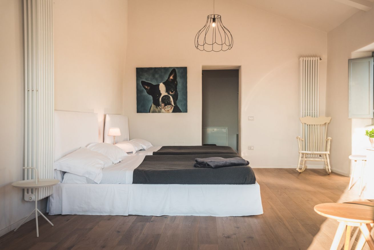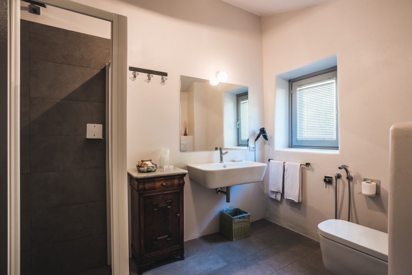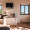 30 square meter quadruple room, open-space with 2 double beds for 4 adults, large bathroom with shower cabin, shared outdoor patio, air conditioning, bathroom with shower cabin, TV, and in-room safe.