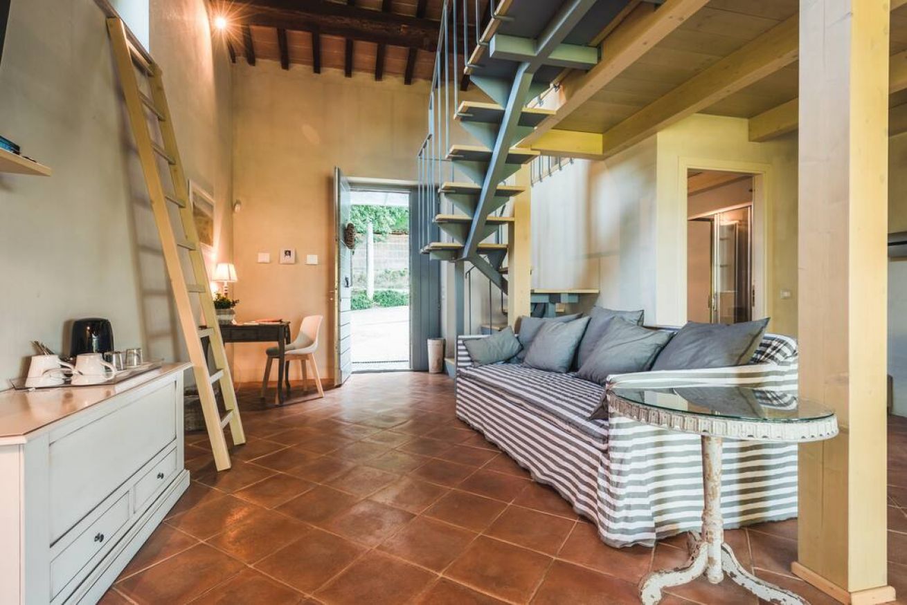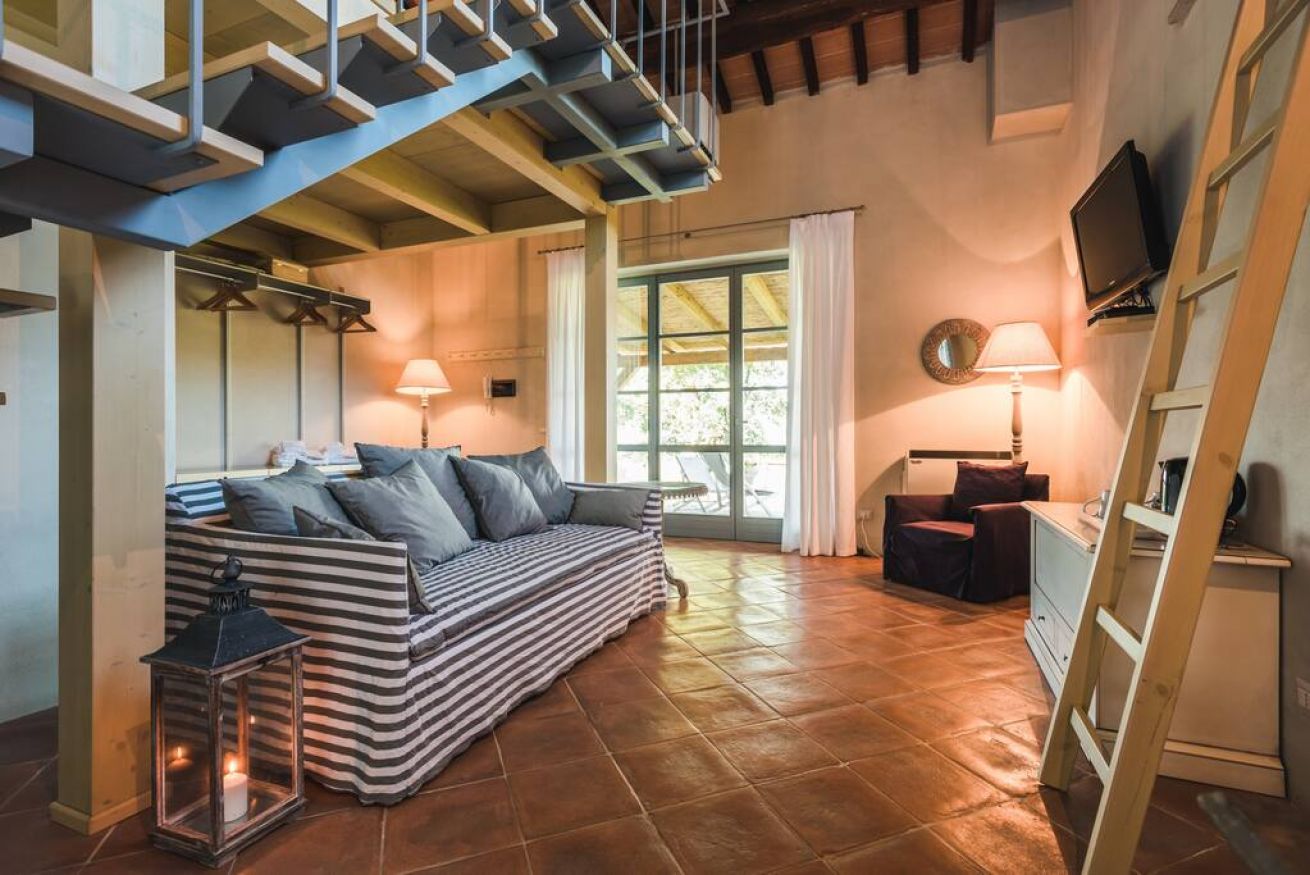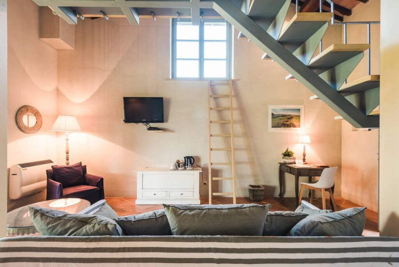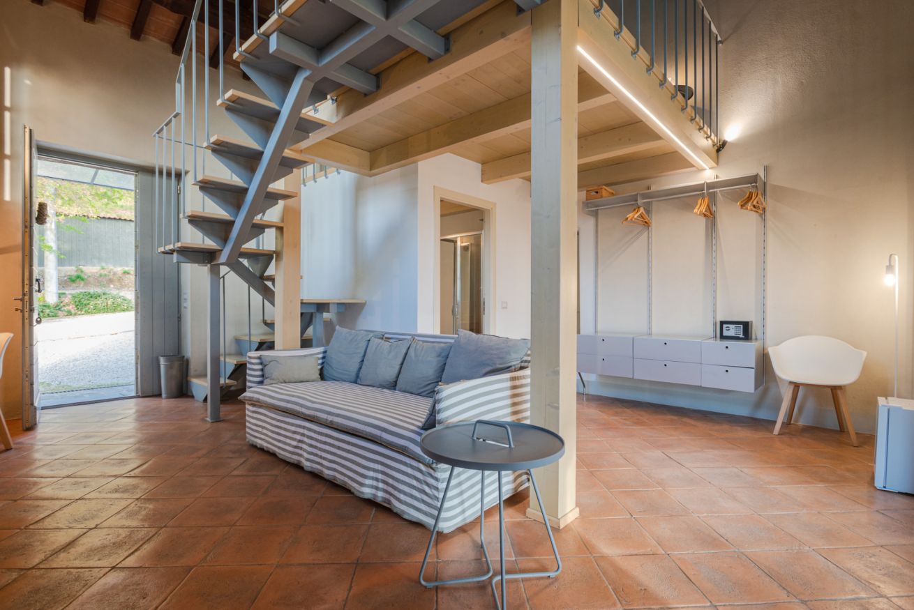 Studio split level of approximately 40 sqm, featuring a double/twin bedroom, living room with a double sofa bed for a total of 4 adults, bathroom with shower cabin, air conditioning, and an external space of 15 sqm.