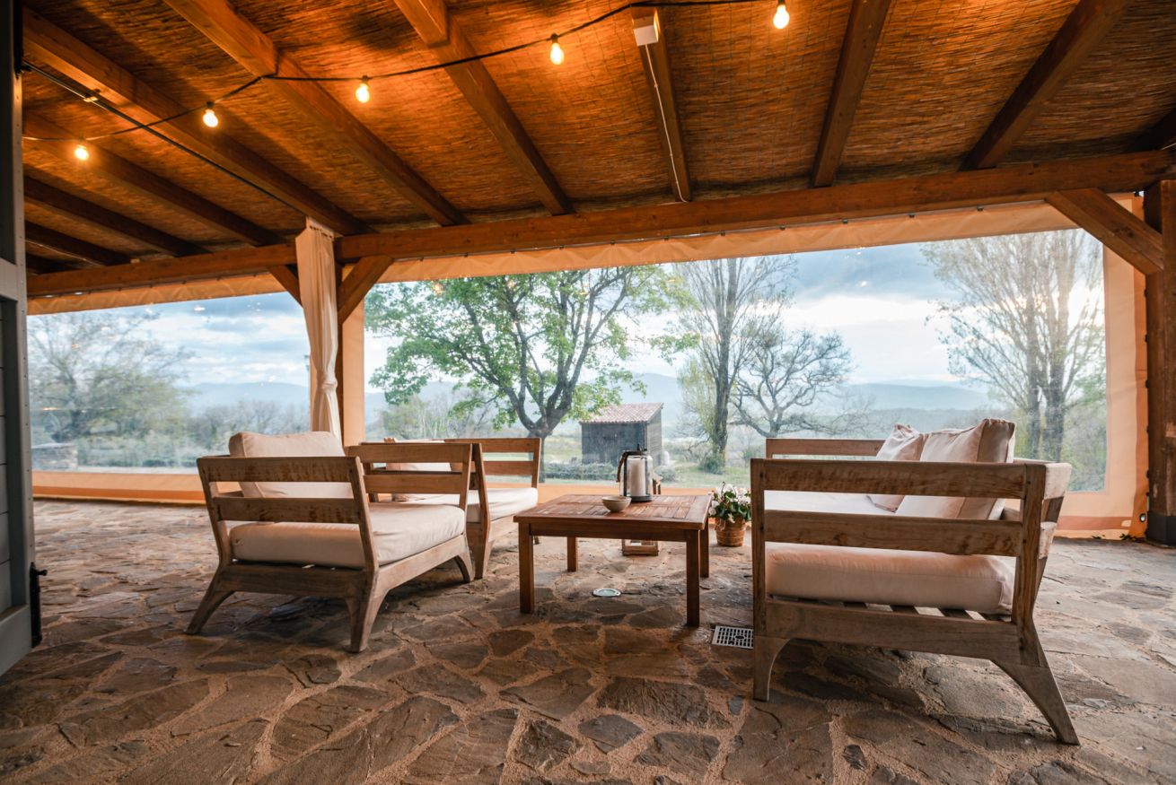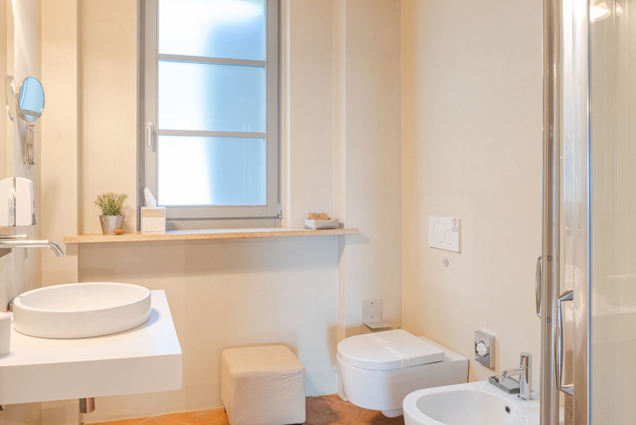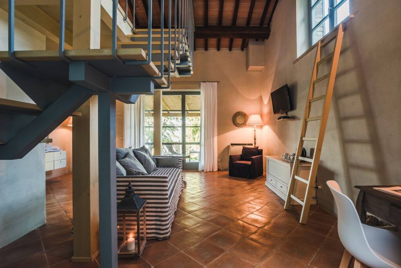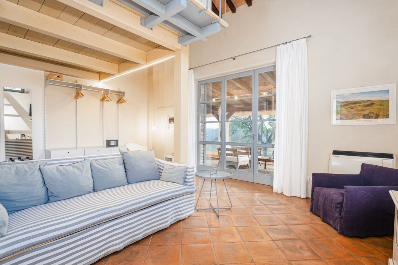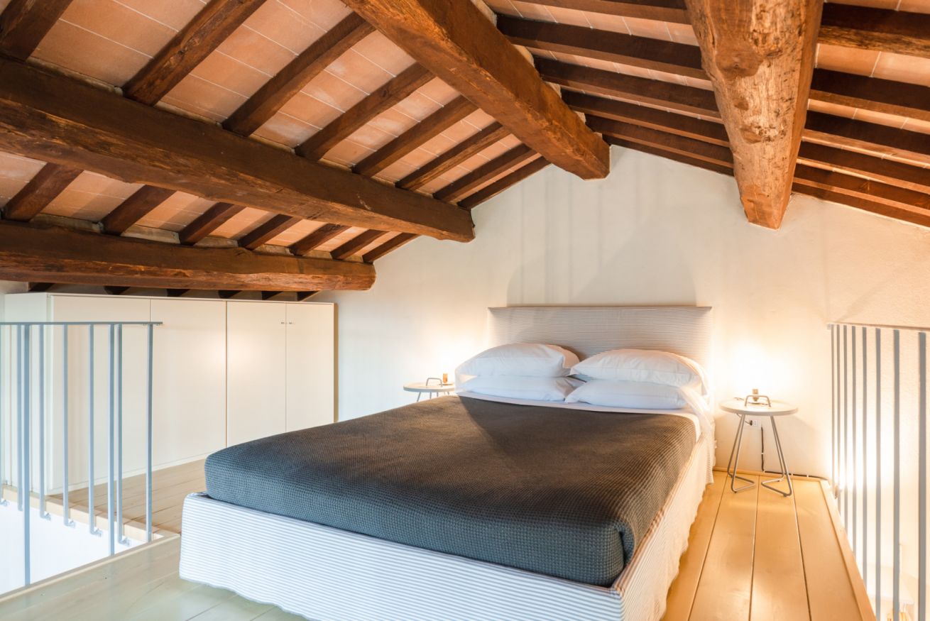 Studio split level of approximately 40 sqm, featuring a double/twin bedroom, living room with a double sofa bed for a total of 4 adults, bathroom with shower cabin, air conditioning, and an external space of 15 sqm.